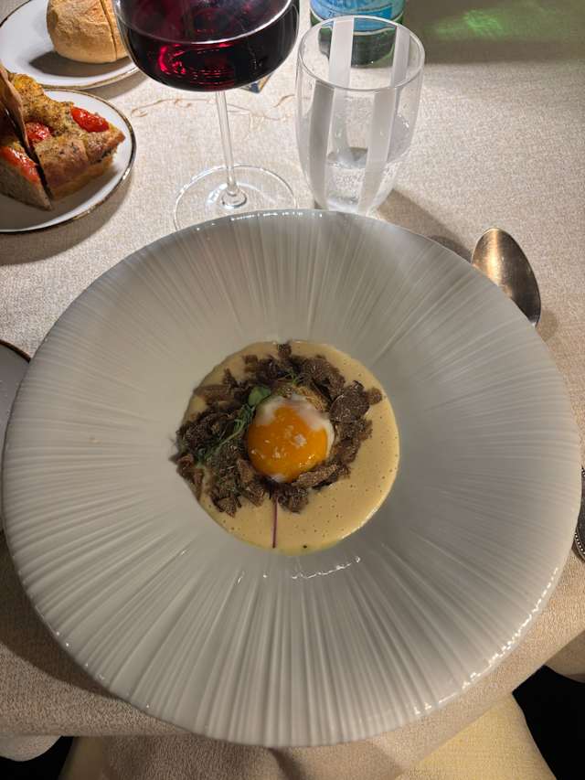 9.5/10The food was outstanding. We loved the egg truffle dish as well as the tagliatelle with truffle. The mains were also excellent. The beef filet and pork tenderloin were terrific as well as our dessert, the cresciendo! The wine list is very good too.