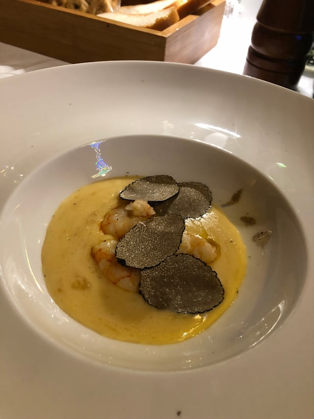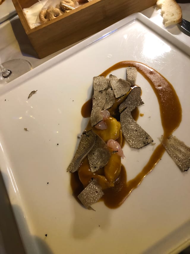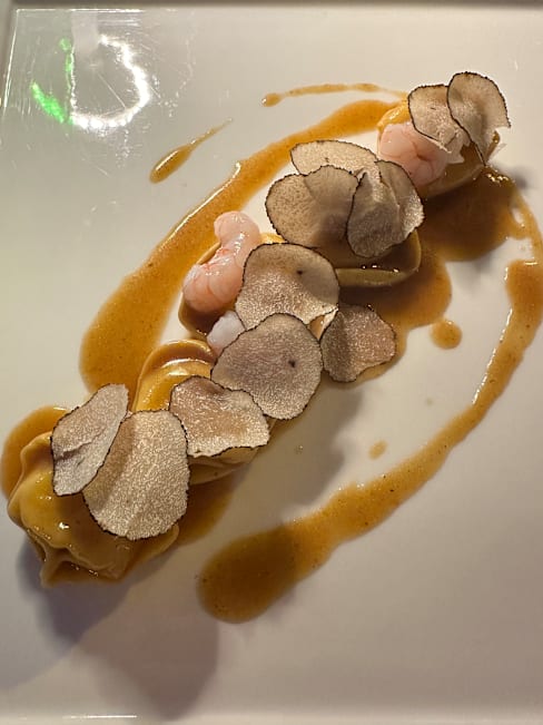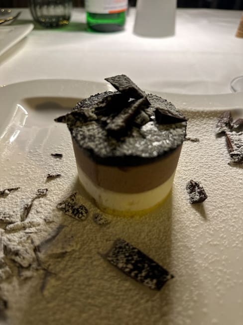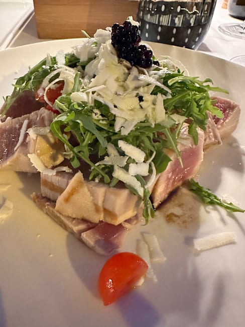 9.5/10Great recommendation by our AirBnB host for my birthday on our arrival day. Great food (pasta with truffles, Seabass, grilled vegetables, half bottles of really good wine and excellent Tiramisu. Cheesecake wasn't that great.