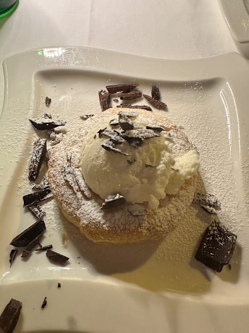 6/10Beautiful setting + ambience w kind, professional servers. The 12-min wait for sea bass + 10-min wait for sfogiatelle were considerably longer. Both were OK, but not remarkable. Baked potatoes were fair. Overall, high expectations not met, but still a good, worthwhile dining experience.