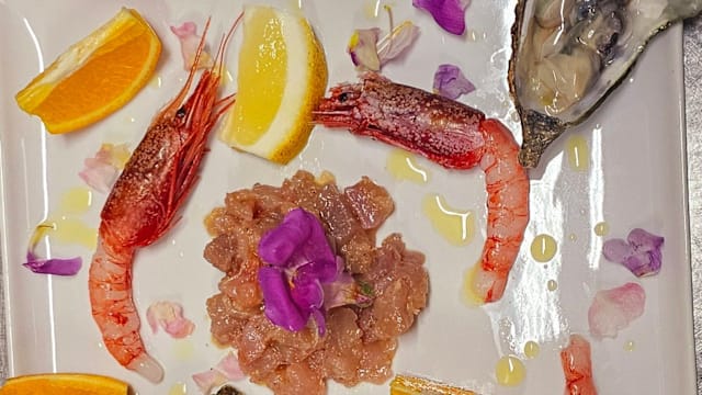 Tartare di tonno, alici impanate, carpaccio di spada, polpo e patate