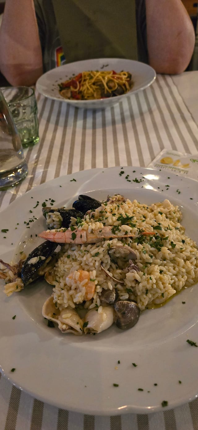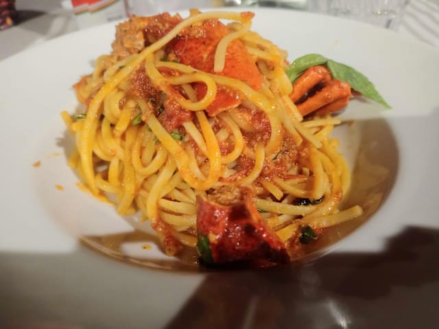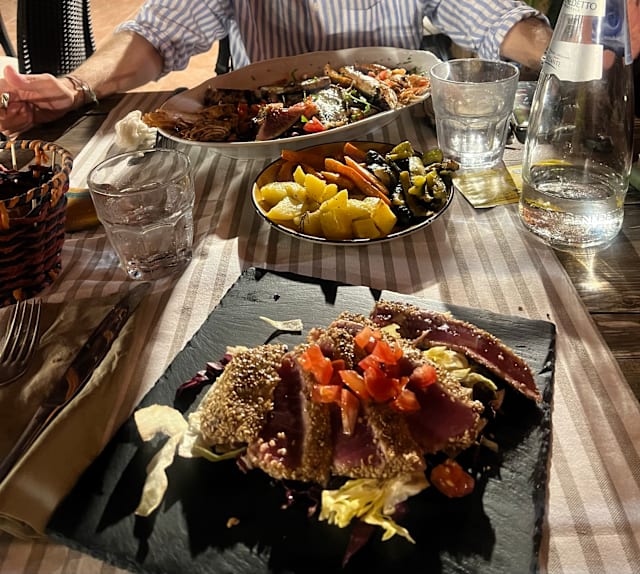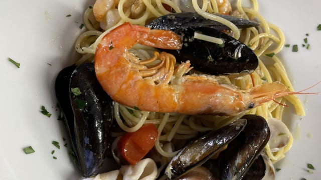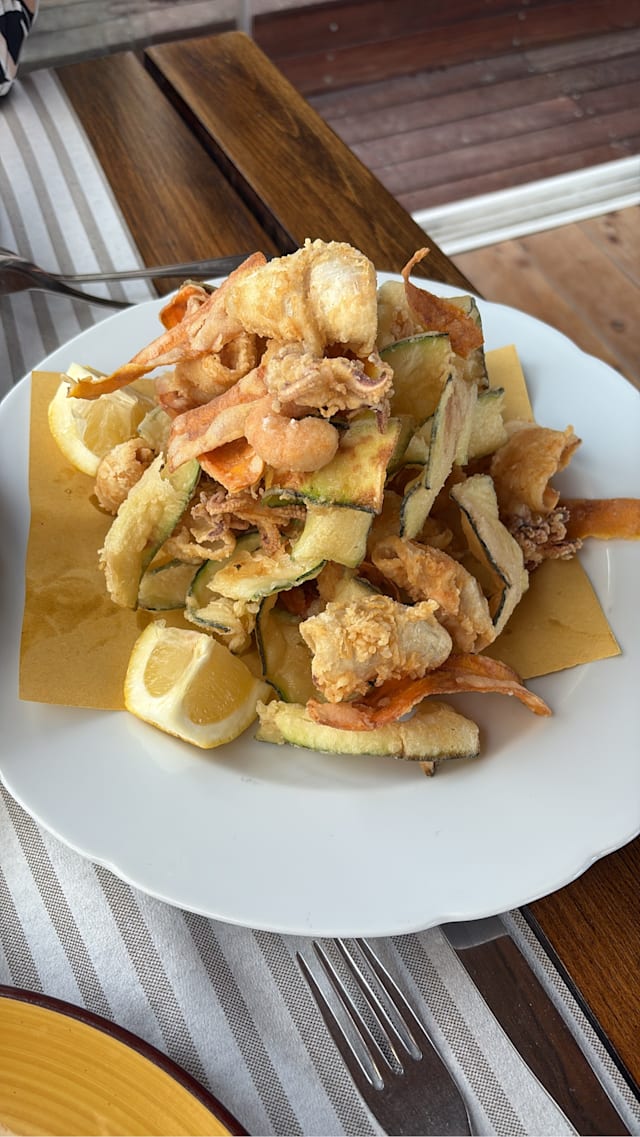 6.5/10Mixed feelings. Not very welcome when arriving. It was a football evening, so there was a mega screen and loud audio. Food was good, and plentiful, but somewhat off the mark (fritto misto just with squids, no shrimp, no anchovies, no white fish, and a lot of — very good and crunchy — veggies). Ordering somewhat uneasy, you had to wait for someone with a tablet, and they were very busy