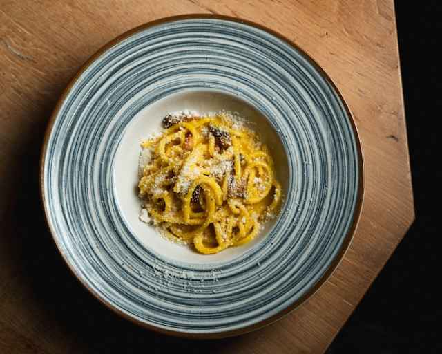 - Pasta fresca con ragù bianco di fassona, zeste di limone, maggiorana e monte veronese.