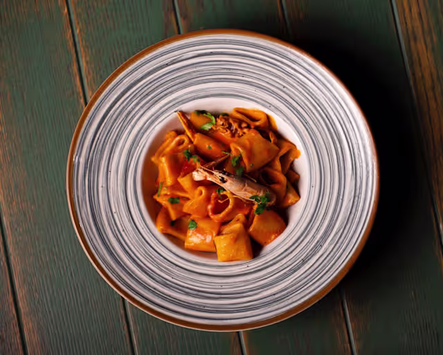 - Pasta fresca con ragù bianco di spigola, timo e lime.