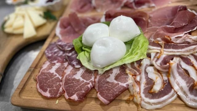 Mozzarella, porchetta di ariccia, scarola fresca condita, olio evo