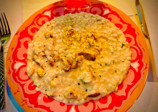 9.5/10Warm welcome despite us being first in at 6.30pm due to a blue note Jazz concert next door. Great red wine by the (4), pasta and prawns , Colletta Milanese, and a crème brule. £86 the lot including 10% tip. Excellent