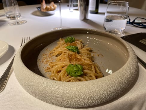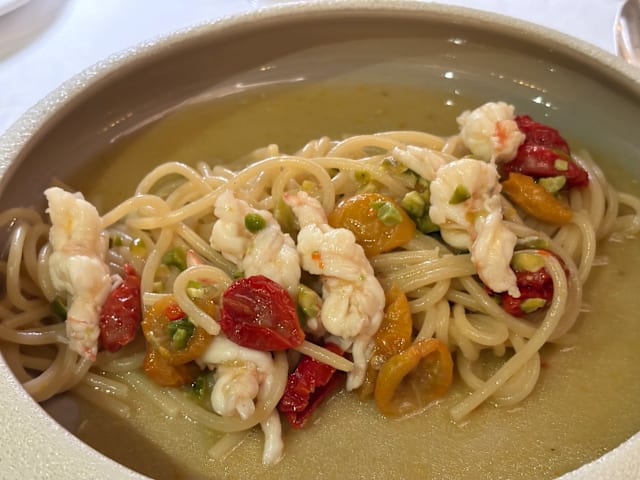 8.5/10Very nice restaurant, the service was perfect and the main course : ravioli was delicious The first course : tartare of langoustine was ok, but missed some mix of textures to make the difference and take the menu to an upper level. The decoration is very nice and modern, however the ambiance was quite quiet as we were only 2 tables in the restaurant.