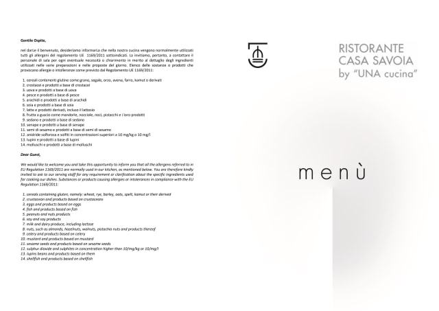 Dear Mrs Massara, thank you for taking your precious time to review our restaurant “Casa Savoia” expressing your feelings with reference to your recent experience with us. We are all so pleased to hear that you felt completely satisfied by your experience and we thank you for highlithing the exquisite taste and quality of our dishes as well as professionalism of our service Ambassadors. We will share your comments with great pleasure with all our teams. We would be extremely grateful if you took a moment to review our hotel on Tripadvisor. Reviews help us get better for our Guests and we would love to let the community know what you think. We do hope to welcome you again in our restaurant “Casa Savoia” by UNA Cucina and we remain at your disposal should you need any further assistance or information. Best regards, Leonardo Serranti General Manager