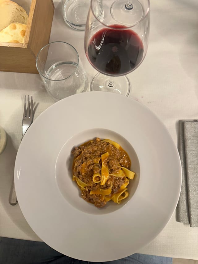 Pappardelle verdi con Ragù bianco di Pollo, Sale aromatico e Olio all’origano