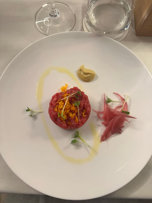Tartare vegetariana con Pomodorini Confit, Mousse di Parmigiano e Glassa di Aceto Balsamico