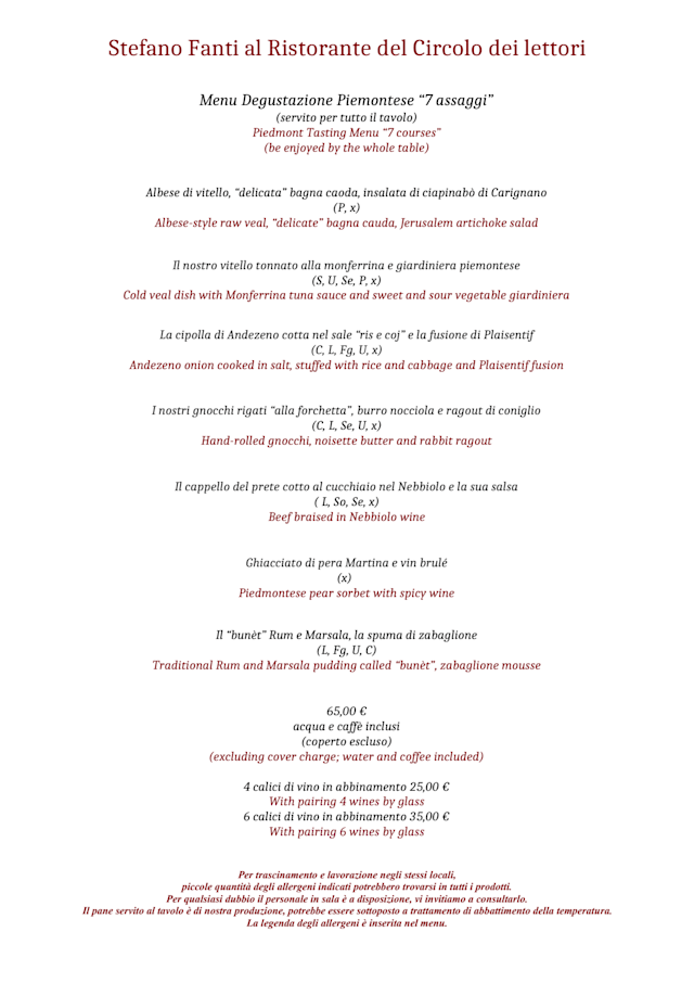 10/10The professional staff and the exquisite combinations that the chef Stefano Fanti prepared made the evening fantastic for us!