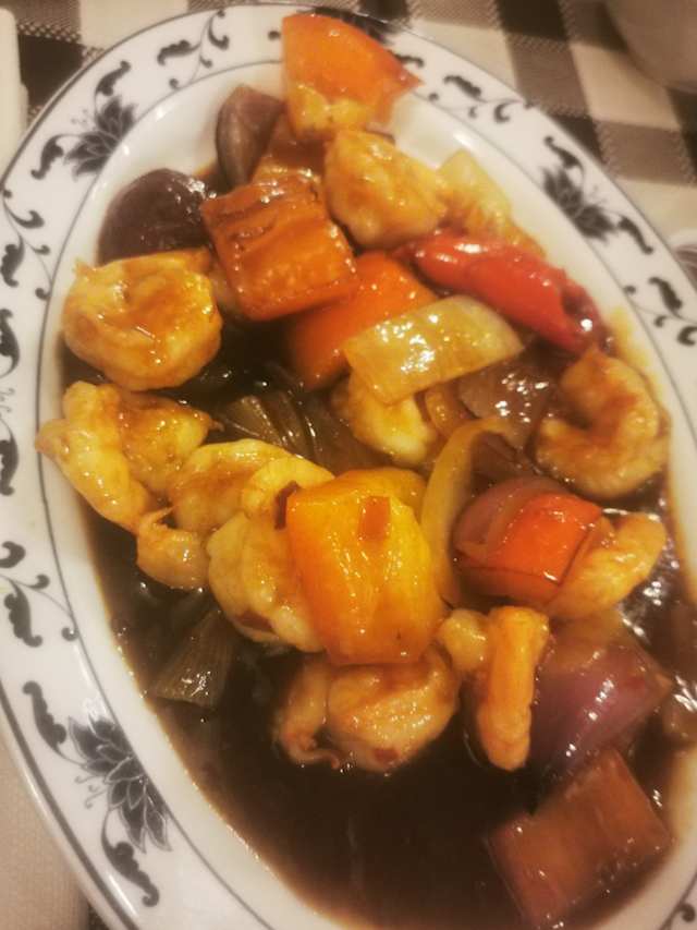 - Gamberi, carne con sesamo