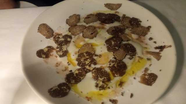 Battuta di gamberi, fonduta di caciotta e tartufo