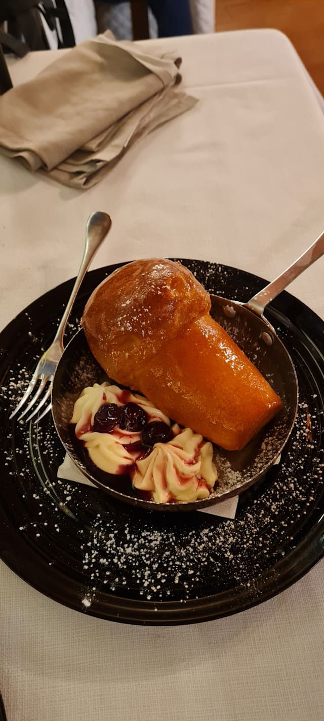 Babà napoletano con crema fabiani e amarene di gubbio