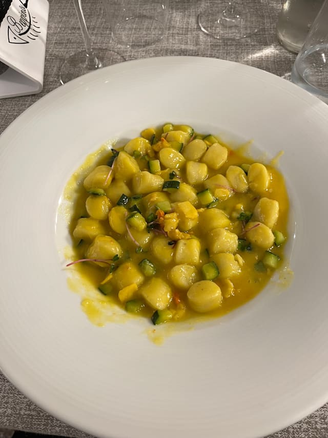 - Gnocchetti alla calabrese: nduja, datterini, stracciatella di burrata e basilico