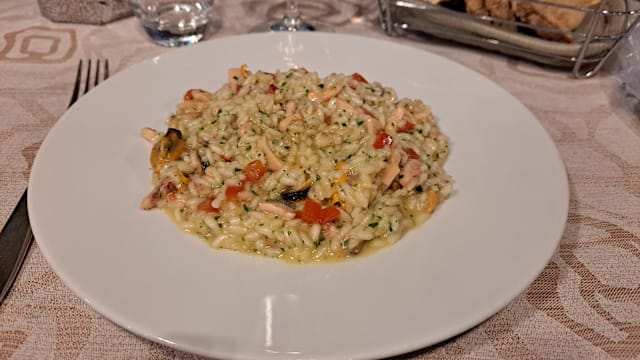 10/10We had read that this restaurant had the best, freshest seafood in Rome! I agree! We ordered seafood risotto which was superb . I highly recommend the tiramisu as well. The menu is on the wall and changes based on the fresh fish bought that day. Wait staff is friendly and helpful. We were the only tourists, which is always a good sign. Highly recommend this restaurant.
