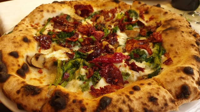 Fior di latte, tartufo nero, funghi porcini e grana padano in cottura