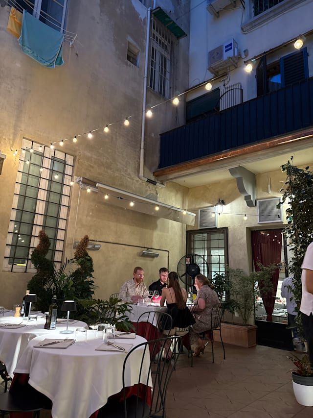 10/10Super cute open air courtyard dining. Staff expertly helped select wine, and even suggested an alteration of a pasta which was amazing! Personally rolled and plated our beef carpaccio as well as prepared and plated our bistecca tableside. Unforgettable!