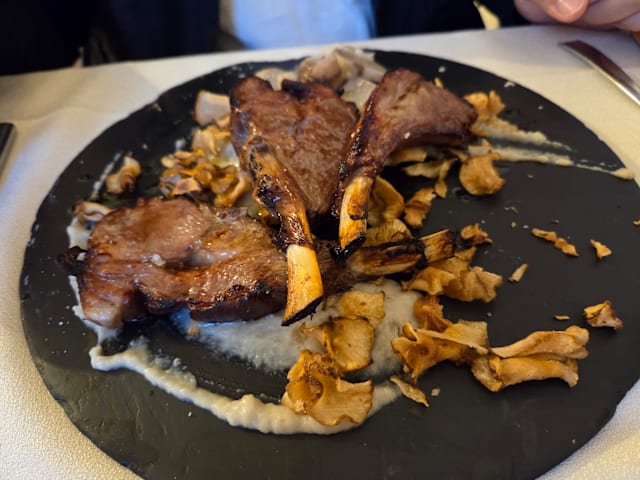7.5/10Bistacca Chiannina for 2, meat was cooked perfectly, and cut a la table. Service was a bit slow and inattentive at the start, but when noticed the head waiter immediately apologised and offered a glass. Very friendly.