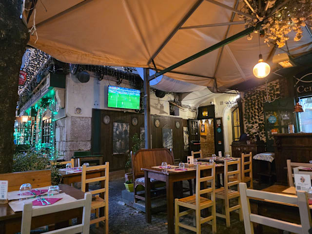 7/10This restaurant appears to be the centre of 3 the staff are attending so we were a little neglected , just a drink makes you chilled however the food we ordered was cooked perfect and warm which we have found rare in Italy , supernova reasonably priced wines Anne side is the Irish bar showing football so can be noisy when Italian teams are live but the plus is they serve Guinness to the table .. worth a visit