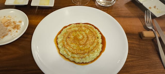Risotto carnaroli riserva zafferano e salame cotto di nepi e mosto selvatico