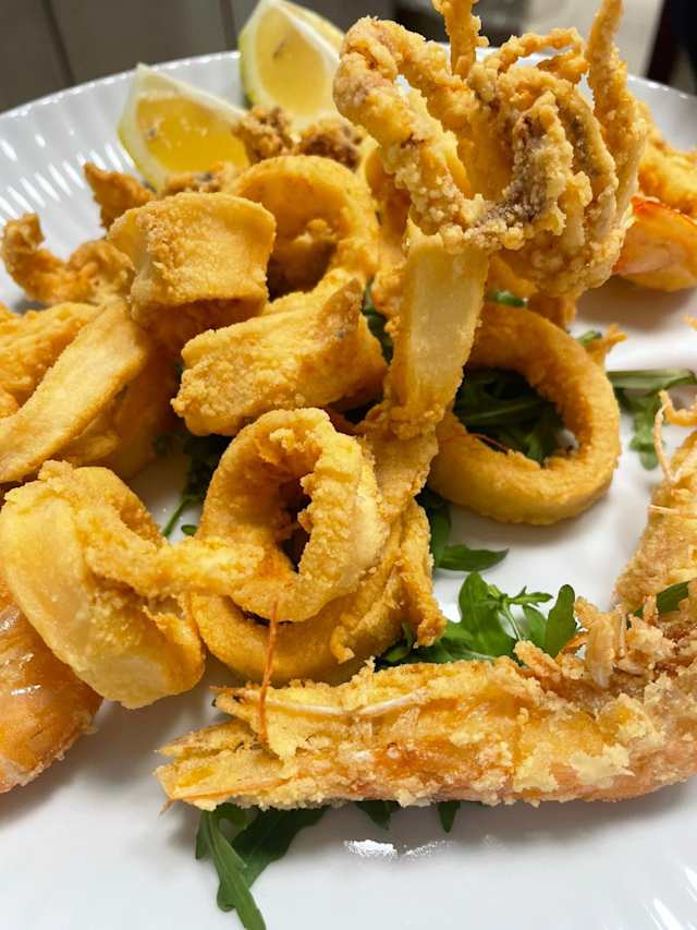 - Risotto con crudi di gamberi e scampi mantecato con burro a limone e parmigiano 30 mesi