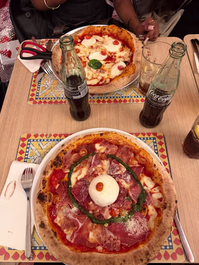 - Parma ham. tomate cereja, pesto, burrata no topo.