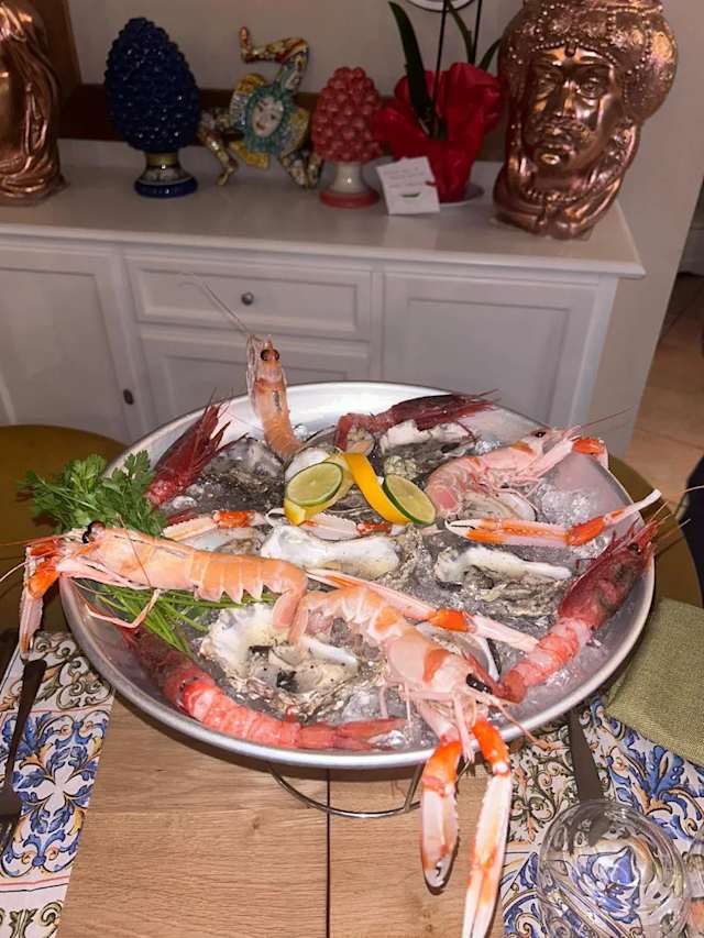 - 2 Ostriche selezionate, 2 gamberi rossi di mazara, 1 tartare di tonno al pistacchio di bronte, 1 scampo