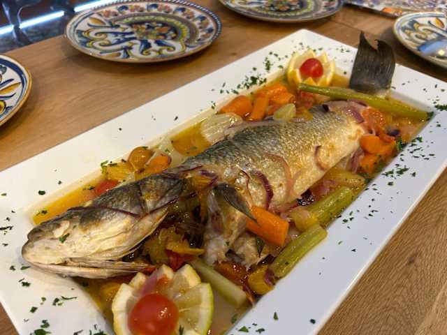 - Sarda, pomodoro, uva passa, pinoli, finocchietto selvatico