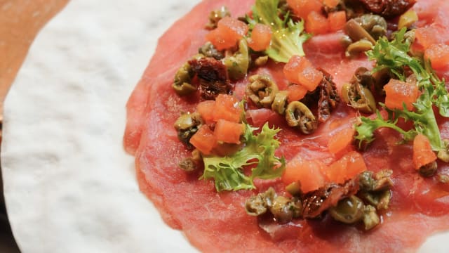 Carpaccio di fassona ai profumi del gargano con insalatina alla puttanesca