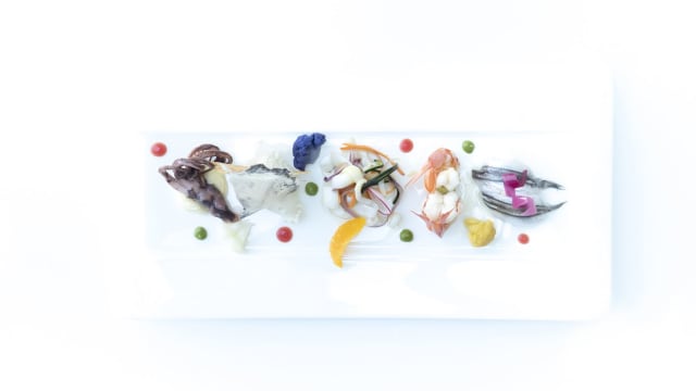 - Ricciola marinata in ceviche, crudità di verdure e sorbetto al mojito
