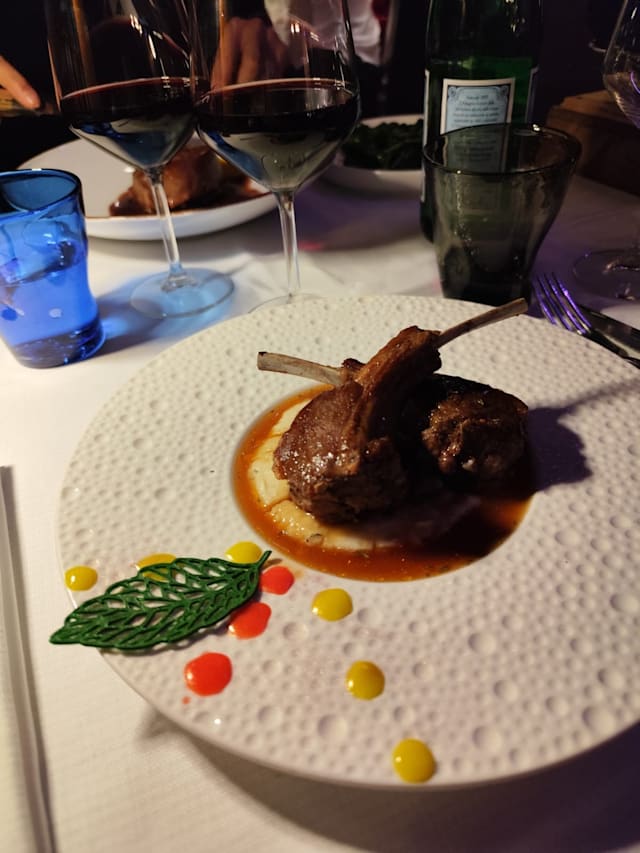 Carré d’agnello di galles profumato alle erbette, sedano rapa e pomodorini confit