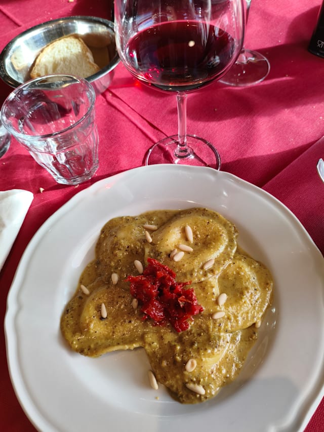 9/10We had dinner on a Monday night so it was understandably very quiet with only a few other diners but we enjoyed our dinners and the chocolate dessert was especially delicious. Could not speak to the views, as it was dark outside, but the woman who served us was very nice and attentive. If you are coming from the south on Via di Santa Caterina, know that this road/walkway alongside the restaurant is closed for construction (at least when we went in late March 2024) and you’ll need to walk all the way around the small village (about 5 min walk) to get to the restaurant entrance. So just be prepared for that or plan to come from the north on Via di Santa Caterina.