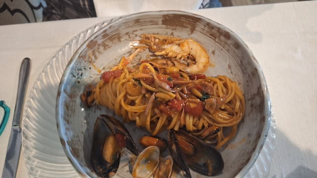 Un classico : i Tagliolini con frutti di mare molluschi e crostacei