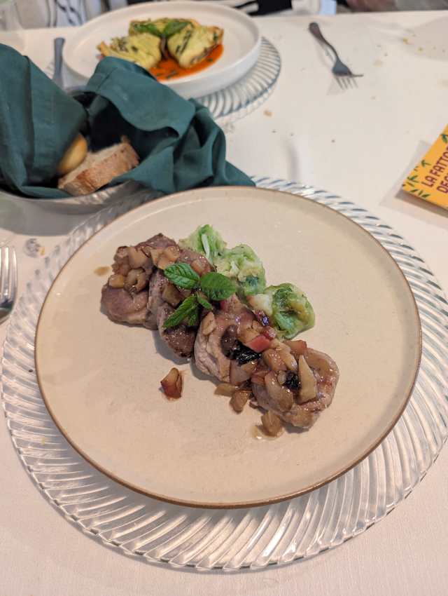 Filetto di maialino cotto con mele e prugne