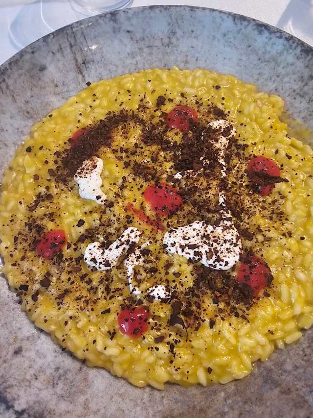 Risotto alla zucca, fondente di pecorino romano e cipolletta rossa “bruciata” e caramellizzata