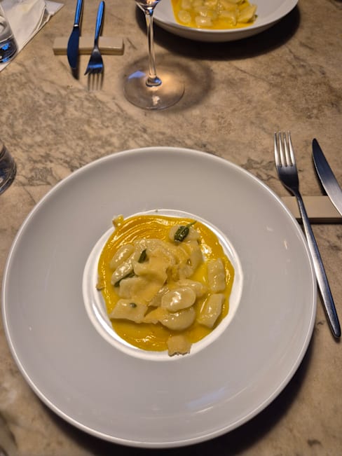 8/10Location Ambience and service all excellent. Food is ok not oustanding .Set menu no choice Roast Aubergine with home made kafeer .The kafeer was tasteless.Risotto of whole grain rice with cheese .Hardly any liquid and cheese bland .Mini pizza on sourdough whole grain bread with pecorino and peppers .Very little cheese and no proprtion to very thick pastry.Peppers should be peeled before roasting