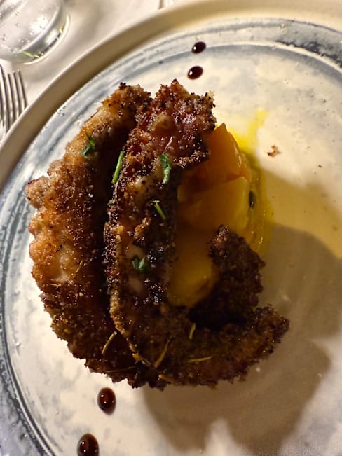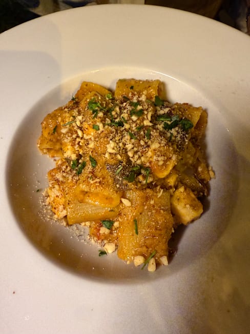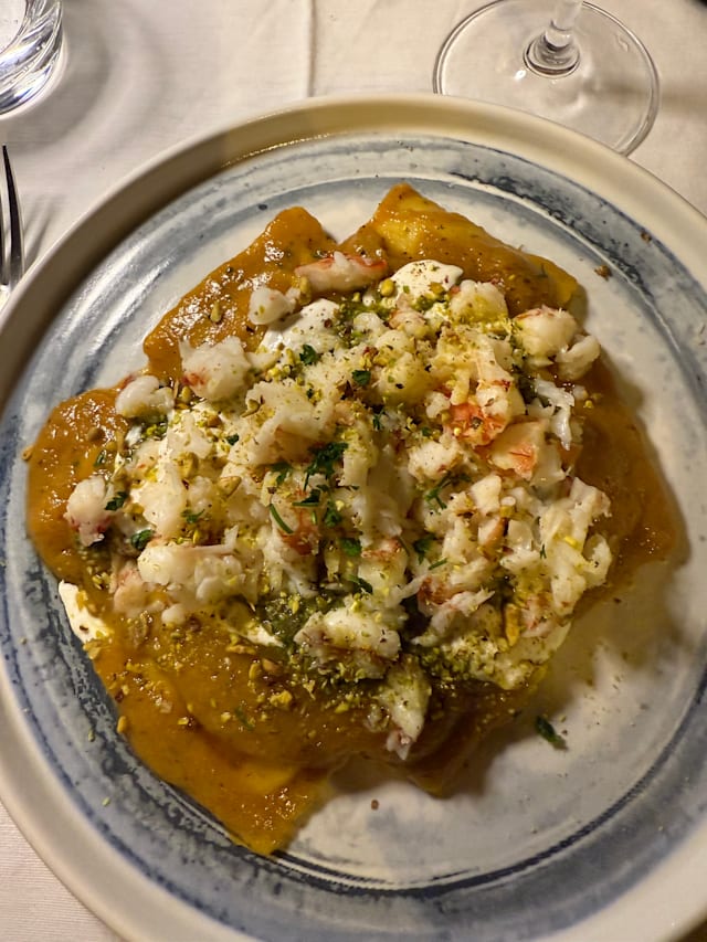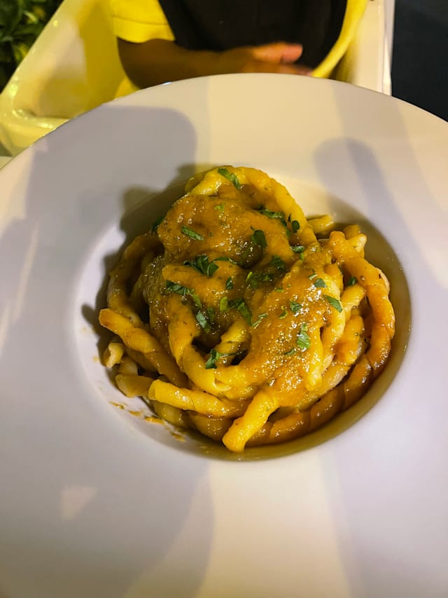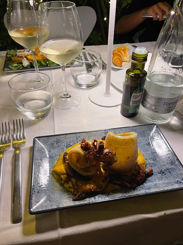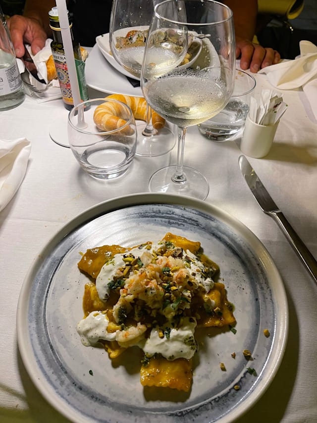 10/10We had very attentive service starting with a gratis Spritz appertivo. The calamari and octopus appetizers were absolutely amazing and creative. We followed this with paccheri pasta with eggplant and swordfish, and ravioli filled with sea bream topped yellow tomatoes, pistachio, shrimp and stracciatella. The meal was paired with a delightful aromatic Grillo wine. The restaurant is a couple of blocks off the main tourist drag on a quiet side street and we loved sitting outside. It was quite popular on a Tuesday night and a few potential clients were turned away so be sure to make a reservation. HIGHLY RECOMMENDED!!