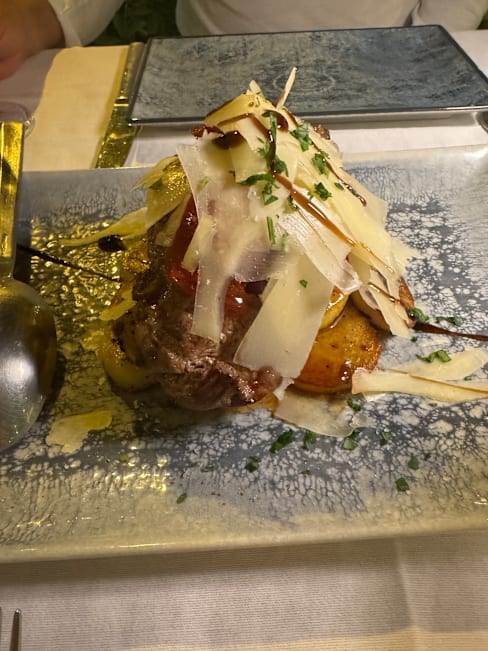 8.5/10Husband and wife team (I can only assume) were very sweet and attentive. Excellent service. My wife enjoyed the food and flavors, I felt it was just a bit under flavored and could have used a little extra salt or seasoning. We had the calamari with ground chickpeas (waterier hummus), sea bass ravioli topped with shrimp (way better than it sounds) and the filet. We spilt everything and was plenty for the 2 of us. We asked for the filet medium rare and came out rare but wasn’t a big deal b/c it was a nice cut. There were slight wafts of garbage and sewage and some stray cats, but strangely, added to the experience and authenticity of the restaurant. Highly recommend!