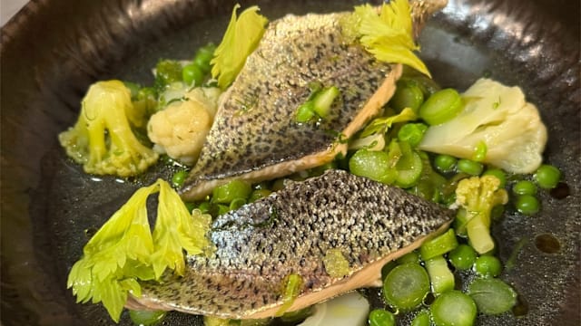 Trota in guazzetto di verdure invernali, limone e maggiorana