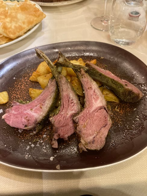 8/10Two of our three dishes - slow cooked octopus and rack of lamb - were absolutely divine, but the third - tagliatelle with a duck ragu - was very ordinary. The gnocco fritto (local specialty puffed fried bread) was also really good. The dining room was pretty and mostly quiet. Location right in the central old town was convenient. However, the service was haphazard and sort of chaotic. I think they must have been understaffed, because the waiters were running around like rats in a maze. The grilled vegetables we had ordered to go with our meal were forgotten until we flagged down a scurrying waiter when we were already half finished, and then they finally arrived after we had finished everything else. Admittedly, the vegetables were delicious, but there was no excuse for that level of service.