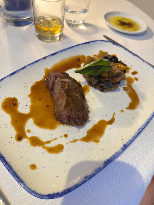 Guancia di manzo cotta a bassa temperatura con “cianfotta” di verdure e il suo fondo anfotta” di verdure e il suo fondo