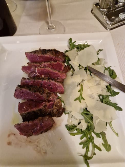 10/10This restaurant was my family's favorite. We loved the pasta AND the steak! We actually ate here 3 times because we liked it so much. I actually dreamed about the steak and had to have it again the next day. This felt like a family restaurant and the service was excellent. The only disclaimer is that it is not an American restaurant. At first they seem brusque but then they warm up and are very sweet. Do not be put out if they seem a little brusque! The food is worth it and everyone was very sweet! She even offered me some free wine on the occasions when I declined. I was trying to be more lucid but how can you say no to wine when you are eating amazing Italian food?!! I highly recommend this restaurant. It opens late too so it was an easy choice to come here after a tour.