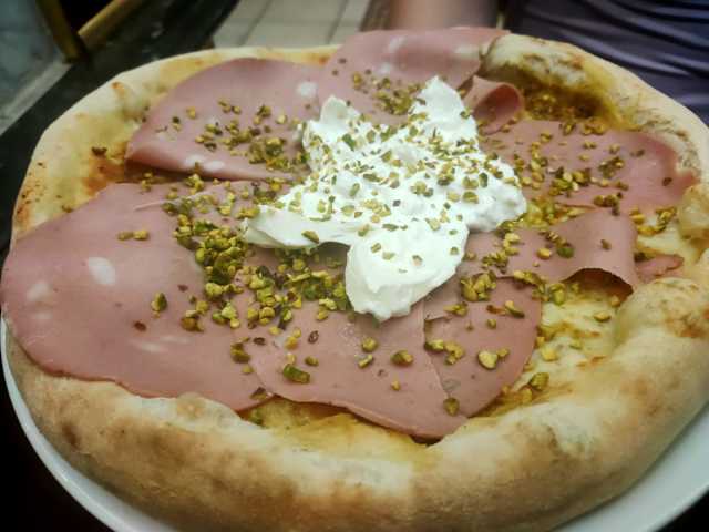 Fior di latte, crema di pistacchio, mortadella, burrata e granella di pistacchio