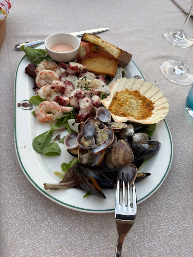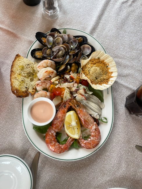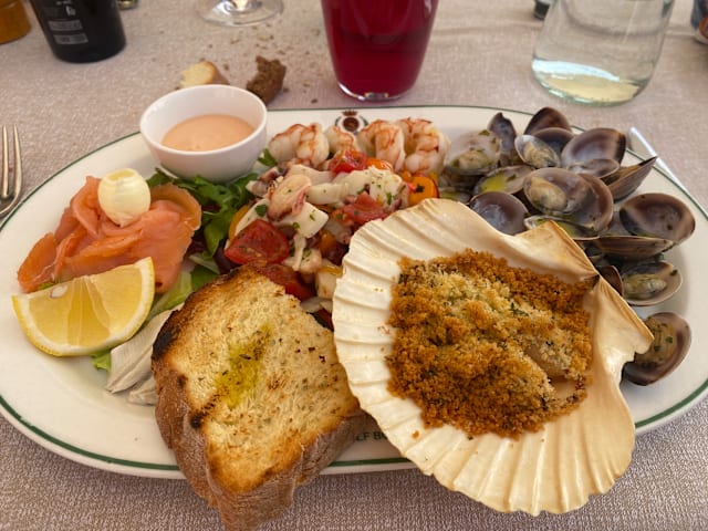 8.5/10Very nice terrace on a nice day. Our grilled fish main courses and the mixed seafood appetizer were all very good. The service was very pleasant too. We enjoyed it.