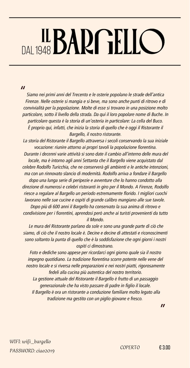8/10Italian style, family run restaurant, with great food. We had lower expectations, but we were in the end nicely surprised. Great Fiorentino T-bone steak for 2 and lot's of different contorno. Il Bargello is the place, which I would kindly recommend.