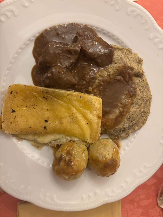 Dear Guest, thank you for your feedback. We're truly sorry your experience didn’t meet expectations. Please allow us to clarify: our hotel does not offer an "all-inclusive" formula. The guests you mentioned were dining together, and the trays referred to are our complimentary selection of appetizers, bread, cold cuts, and vegetables, available to all dinner guests. As for the steak, “tagliata” is traditionally served sliced. We're sorry it wasn’t to your liking or warm enough. In such cases, we always invite guests to inform our staff so we can promptly resolve the issue. We respect your opinion and regret that your visit left a negative impression. We value all feedback as it helps us improve. We hope to welcome you again and offer a more pleasant experience. Kind regards