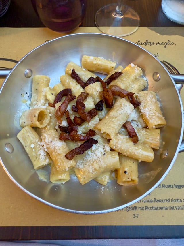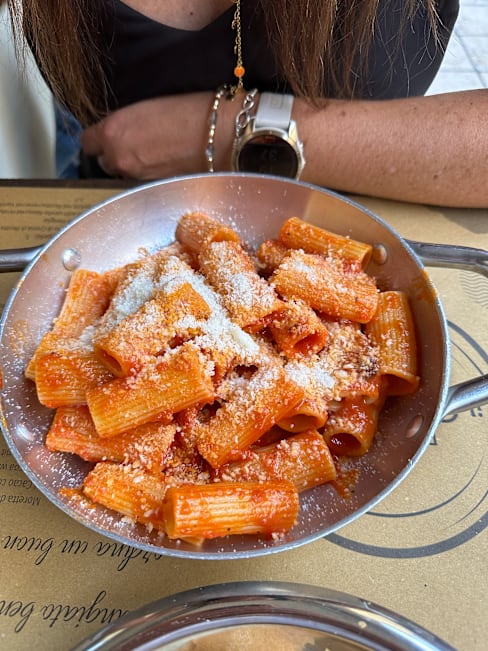 10/10Great inner garden. Carbonara - absolutely masterpiece. Amatriciana was super delicious too. Great starters (buratta with anchovies and mixed fish plate). Super nice and friendly stuff. We dined here 3 days in a row.