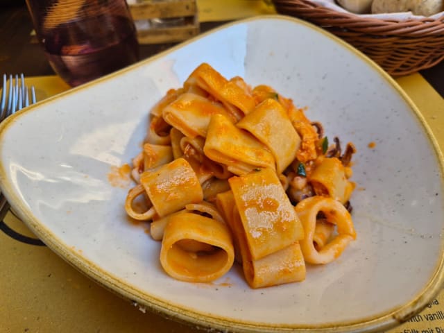 10/10Great inner garden. Carbonara - absolutely masterpiece. Amatriciana was super delicious too. Great starters (buratta with anchovies and mixed fish plate). Super nice and friendly stuff. We dined here 3 days in a row.