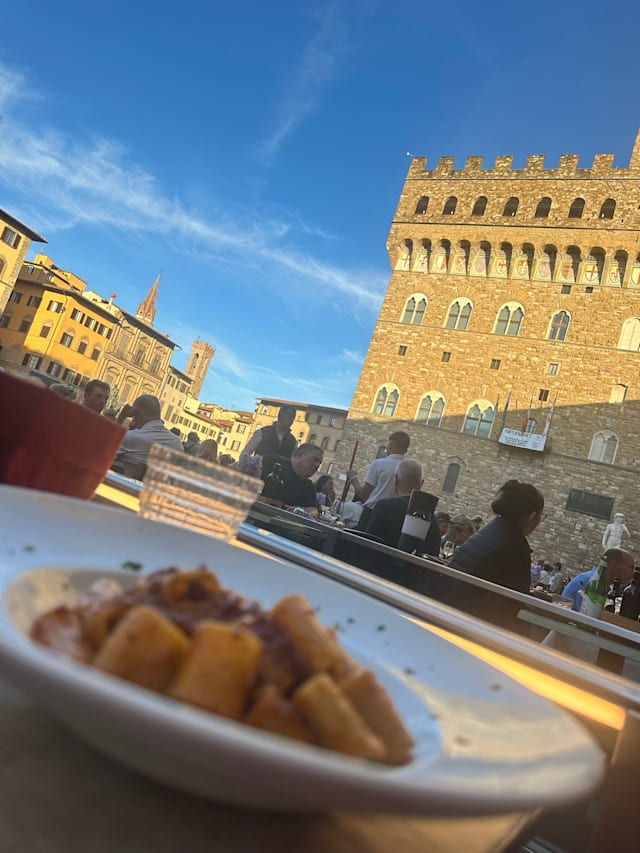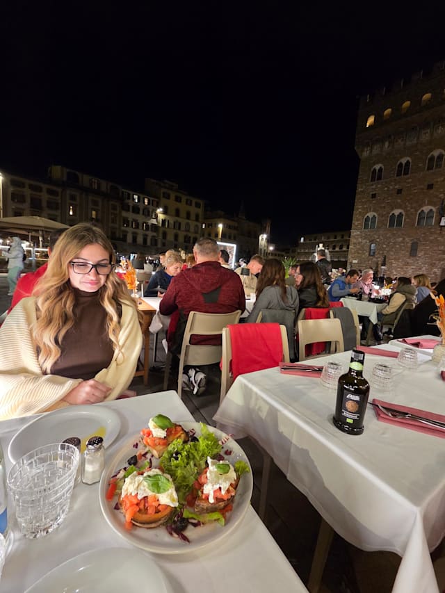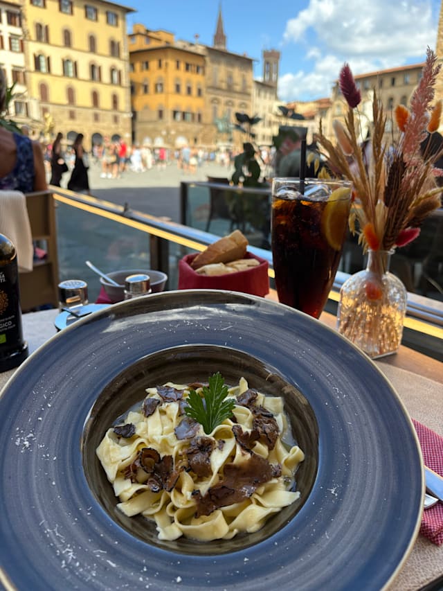 10/10If you are searching for a typical summer dinner overlooking Piazza della Signoria this is the right place. The staff is professional and very kind, the food is tasteful and authentic. Since we arrived earlier than the reservation time, we had some cocktails and snacks before supper, a very pleasant experience thanks to the charming service. Highly recommend!
