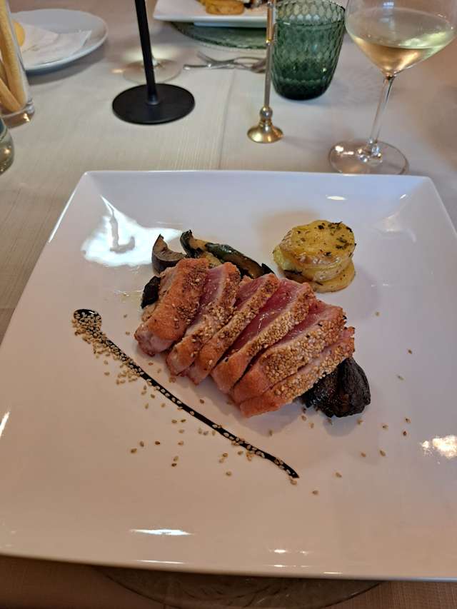 - Ventaglio di tonno rosso scottato con verdurine croccanti e sesamo